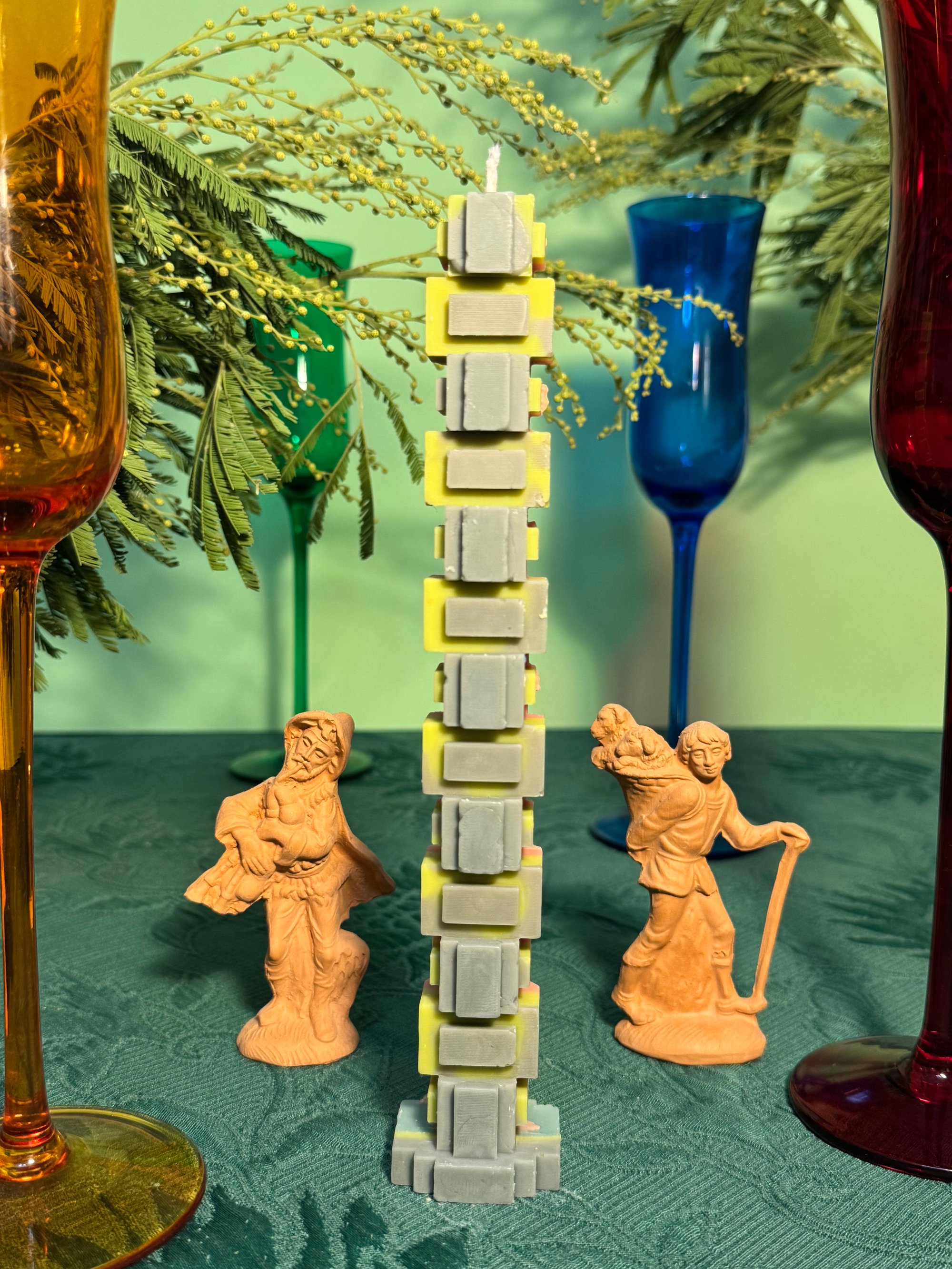 Hand poured Soy wax, moulds designed by myself and 3D printed, to get the weirdest most angular candle out there.