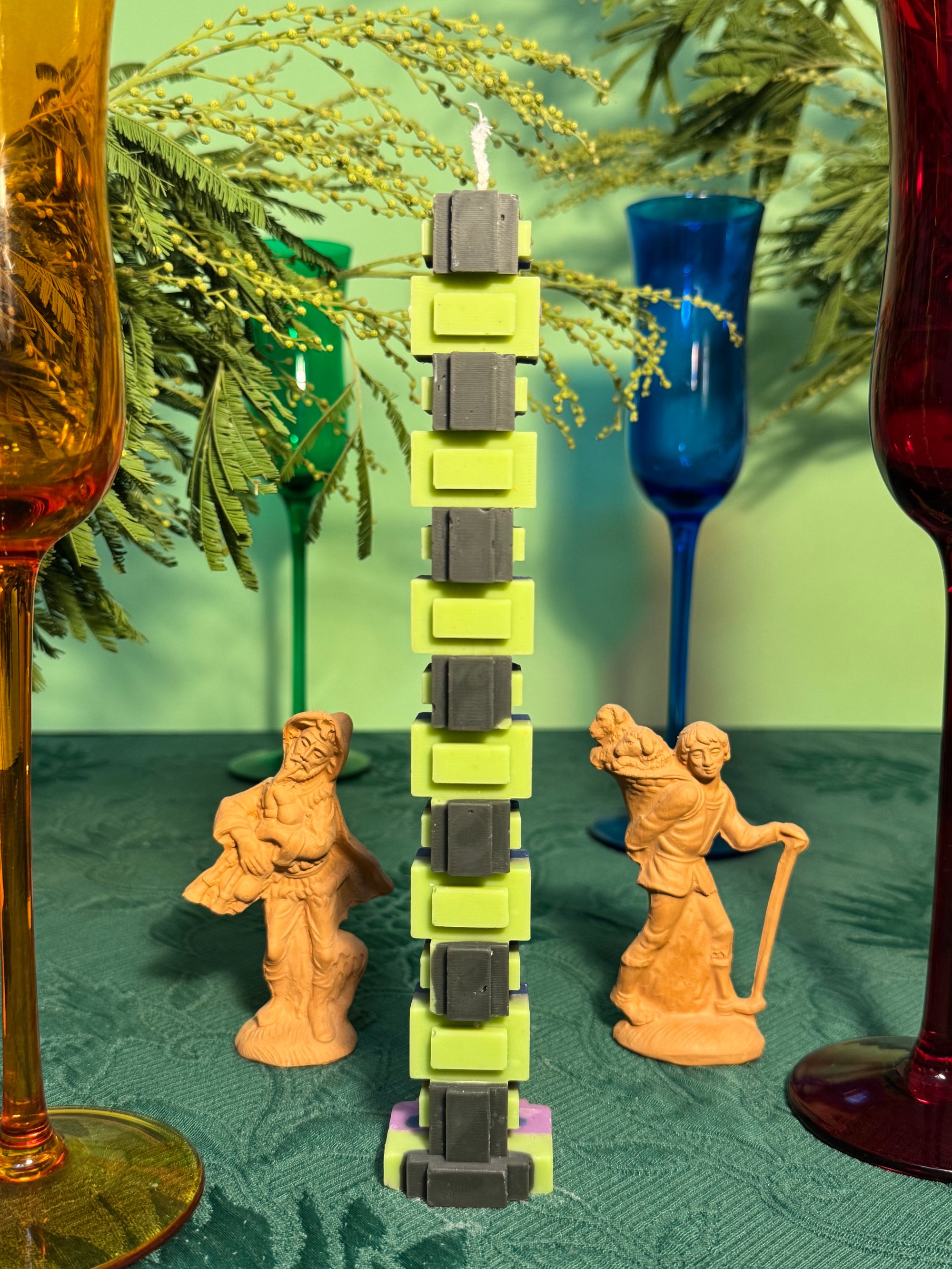 Hand poured Soy wax, moulds designed by myself and 3D printed, to get the weirdest most angular candle out there.