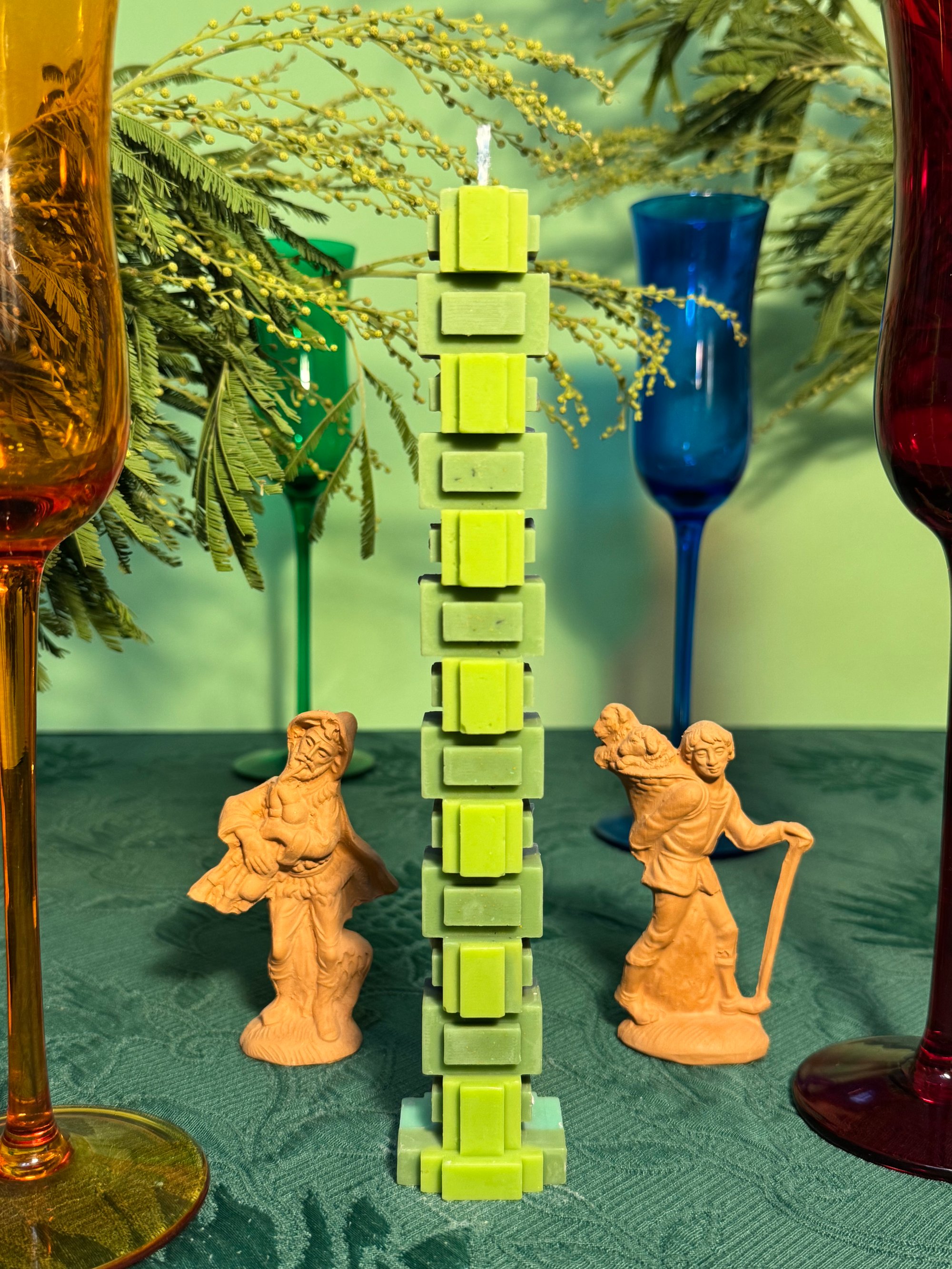 Hand poured Soy wax, moulds designed by myself and 3D printed, to get the weirdest most angular candle out there.