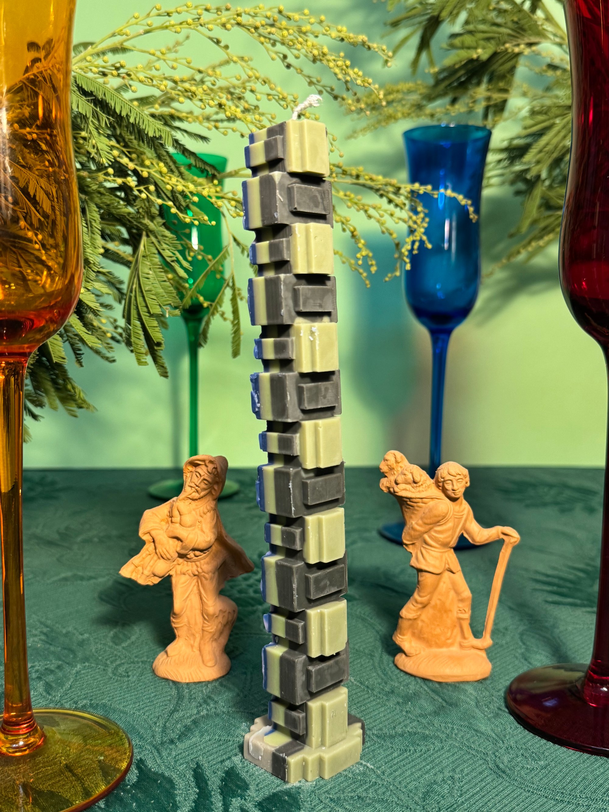 Hand poured Soy wax, moulds designed by myself and 3D printed, to get the weirdest most angular candle out there.