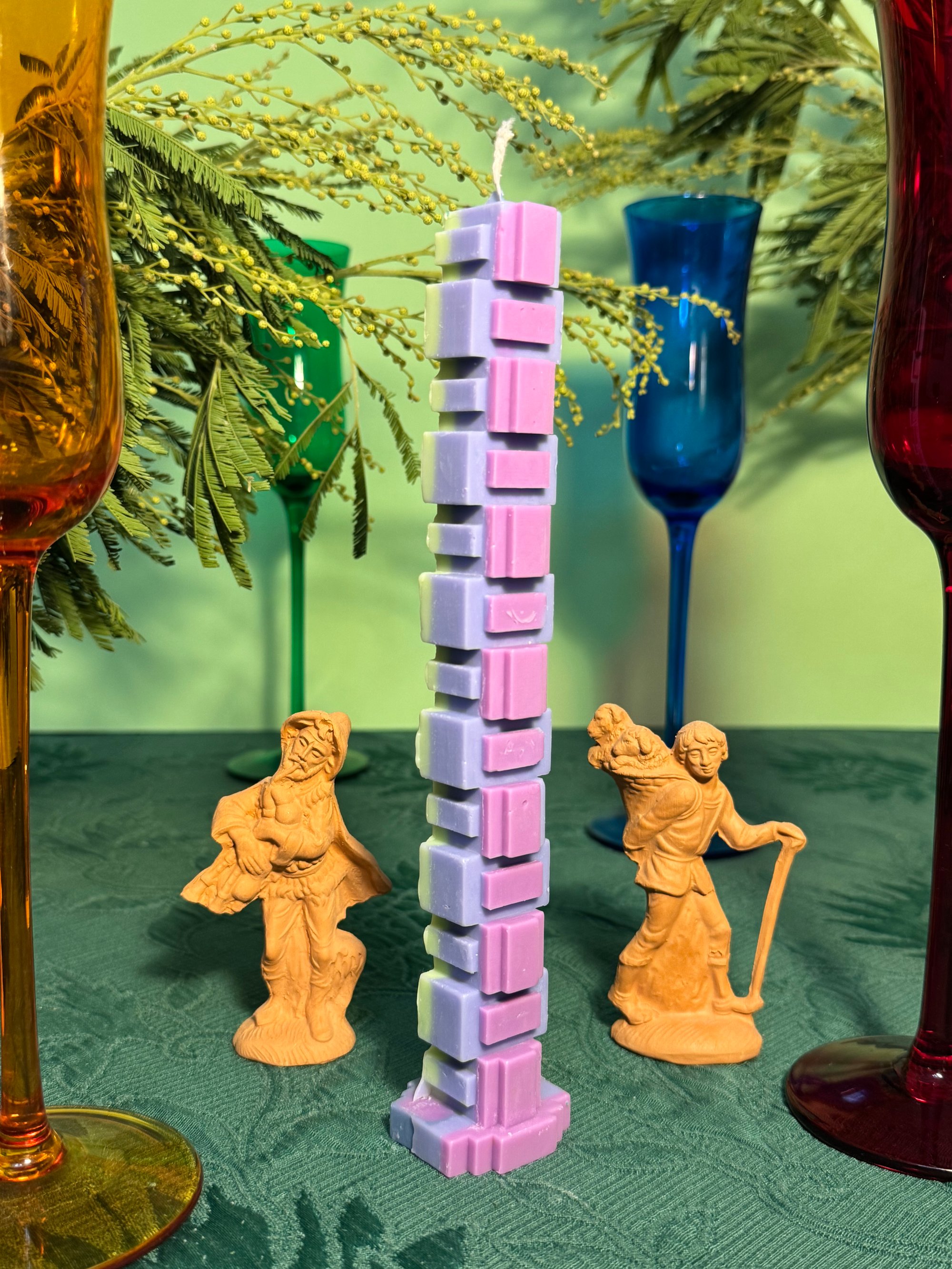 Hand poured Soy wax, moulds designed by myself and 3D printed, to get the weirdest most angular candle out there.